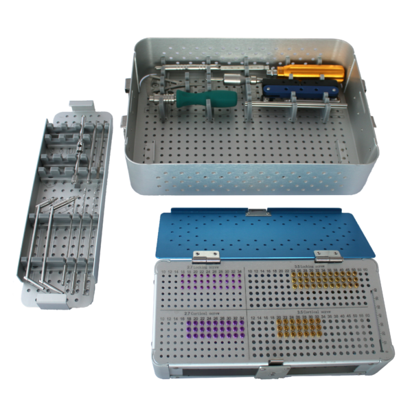 Durch die Bestückung mit einem kompletten Satz Schrauben sind sie sofort startbereit für die TPLO Technik.